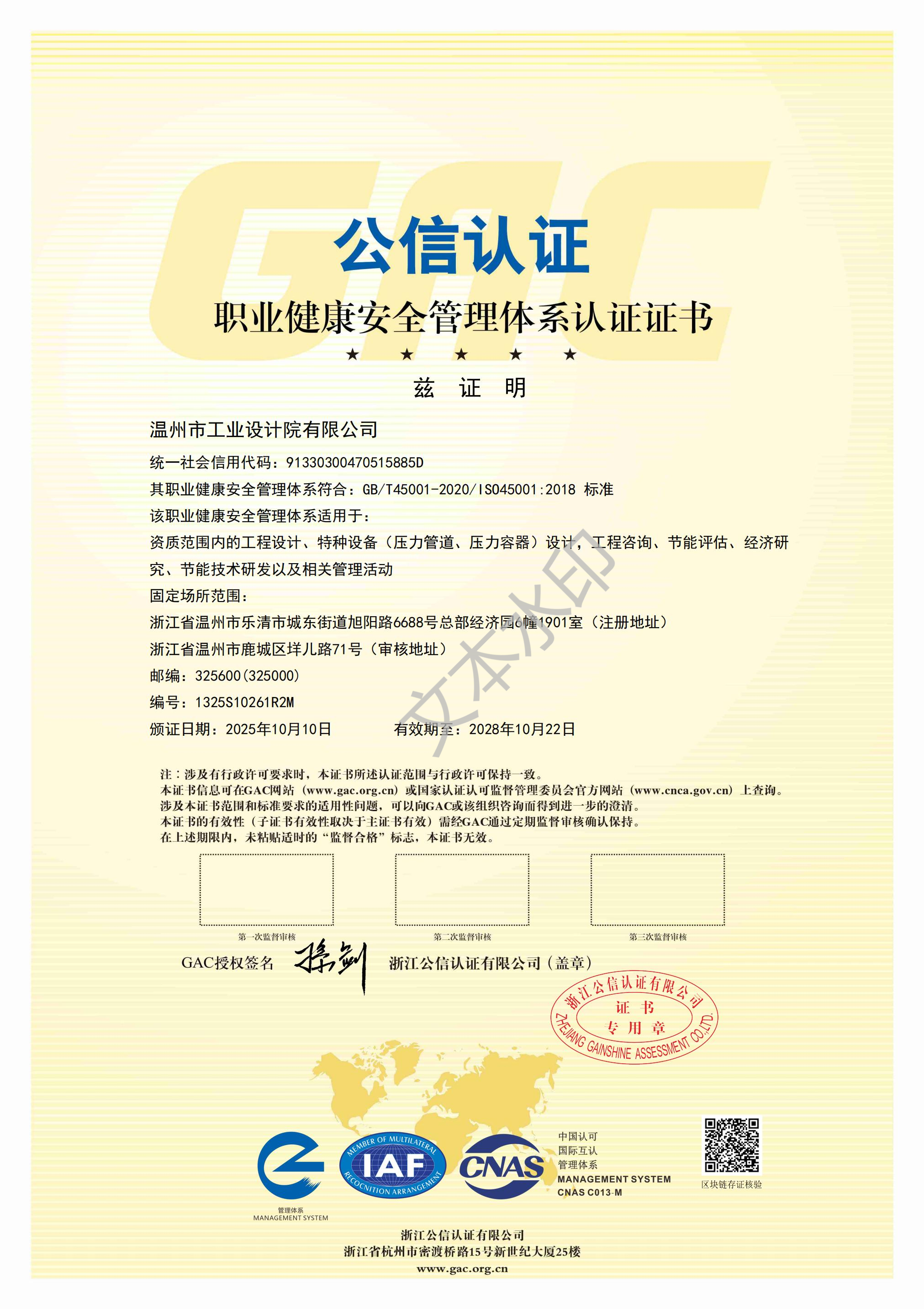 職業(yè)健康安全管理體系認(rèn)證證書(shū)