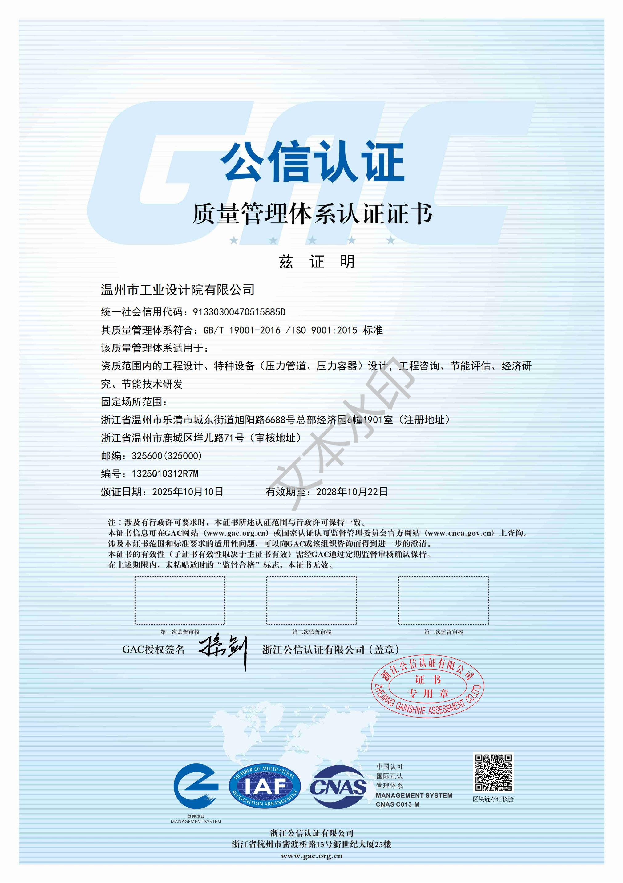 質(zhì)量管理體系證書(shū)