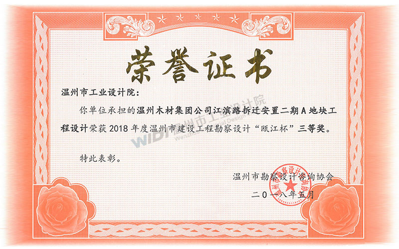 溫州木材集團公司江濱路拆遷安置二期A地塊工程設計 甌江杯三等獎