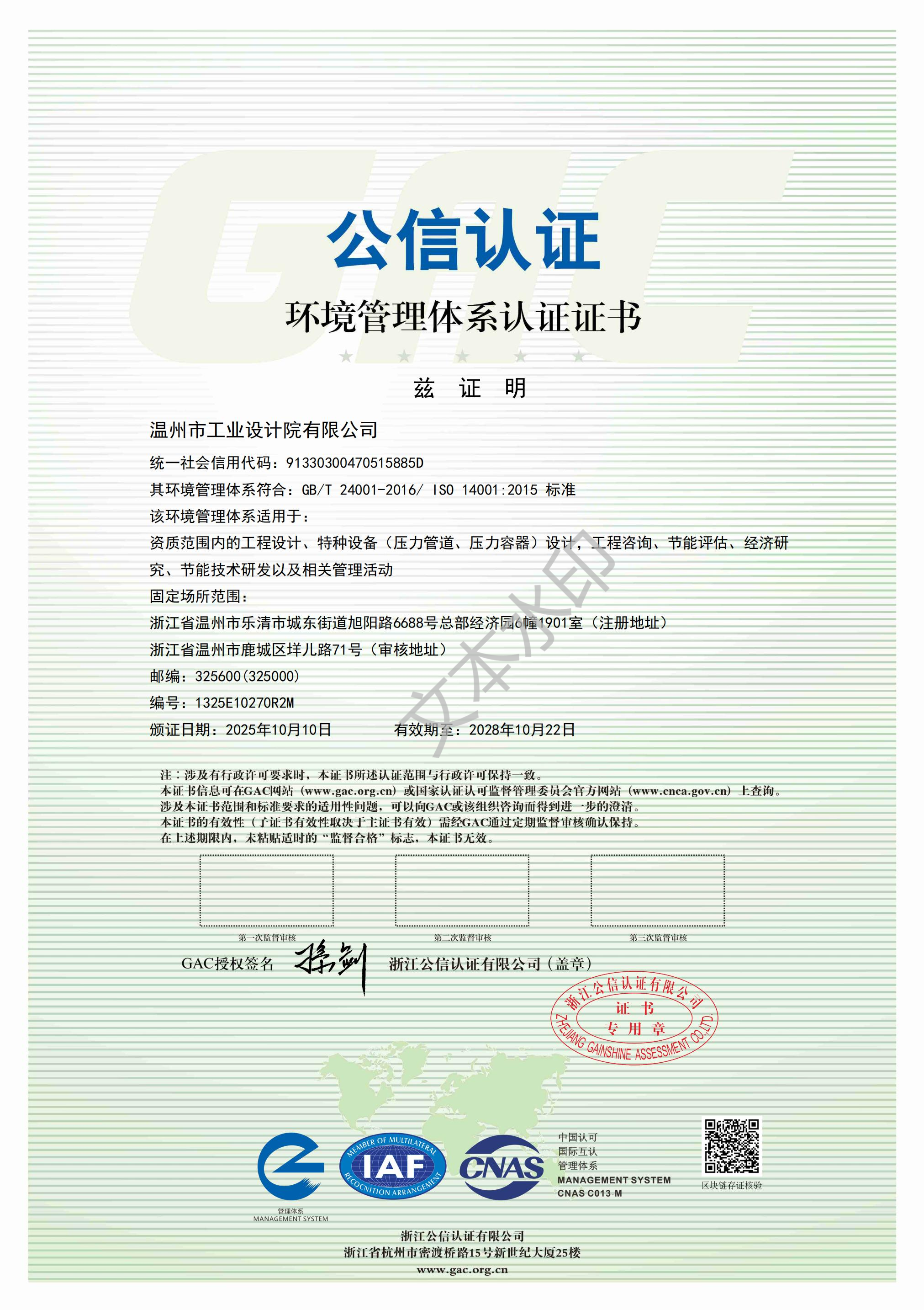 環(huán)境管理體系認(rèn)證證書
