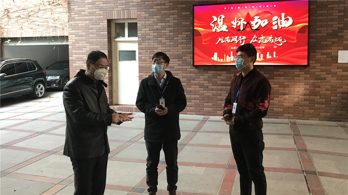 金國平一行在大樓門口主動接受體溫監(jiān)測,檢查大樓的”六個一”執(zhí)行情況,針對性地指出在疫情期間要借助信息化技術(shù)改進(jìn)出入口的登記手段,在提高效率的同時也有效地阻斷交叉感染。接著,檢查組一行深入大樓每個樓層詳細(xì)了解辦公場所清潔消殺狀況、消防安全落實(shí)情況等,并重點(diǎn)強(qiáng)調(diào)了辦公場所的“四個加強(qiáng)”,加強(qiáng)出入人員管控、通風(fēng)、保潔、消毒等工作。